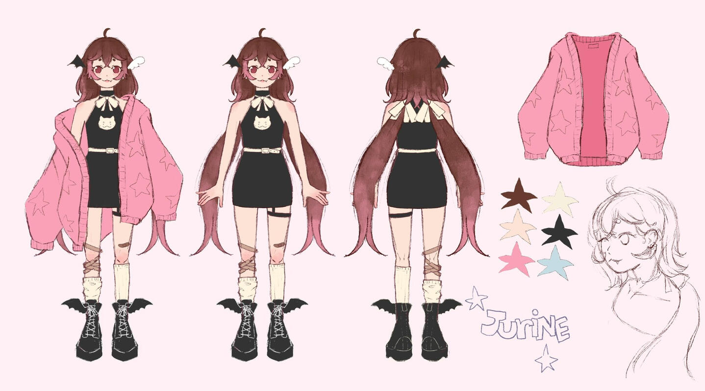 Seja bem-vindo ao meu site!Muito prazer, eu sou a Jurine, uma meia-vampira vegetariana que faz lives, desenha e ama animaizinhos! Aqui você vai encontrar curiosidades sobre mim, minhas redes sociais, artes e informações sobre commissions! 𖹭